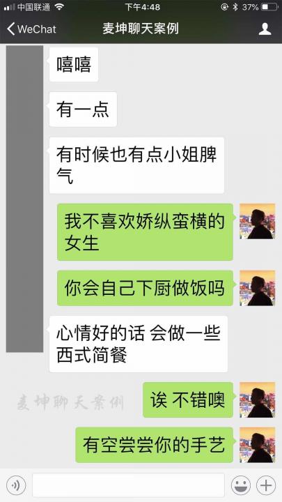 麦坤:我不喜欢骄纵蛮横的女生。你会自己下厨做饭吗?(建立框架)