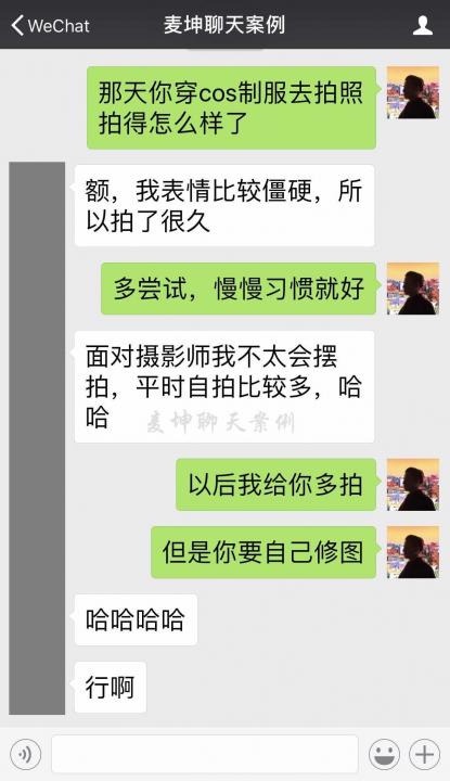 麦坤:以后我给你多拍点照片。(表达兴趣)